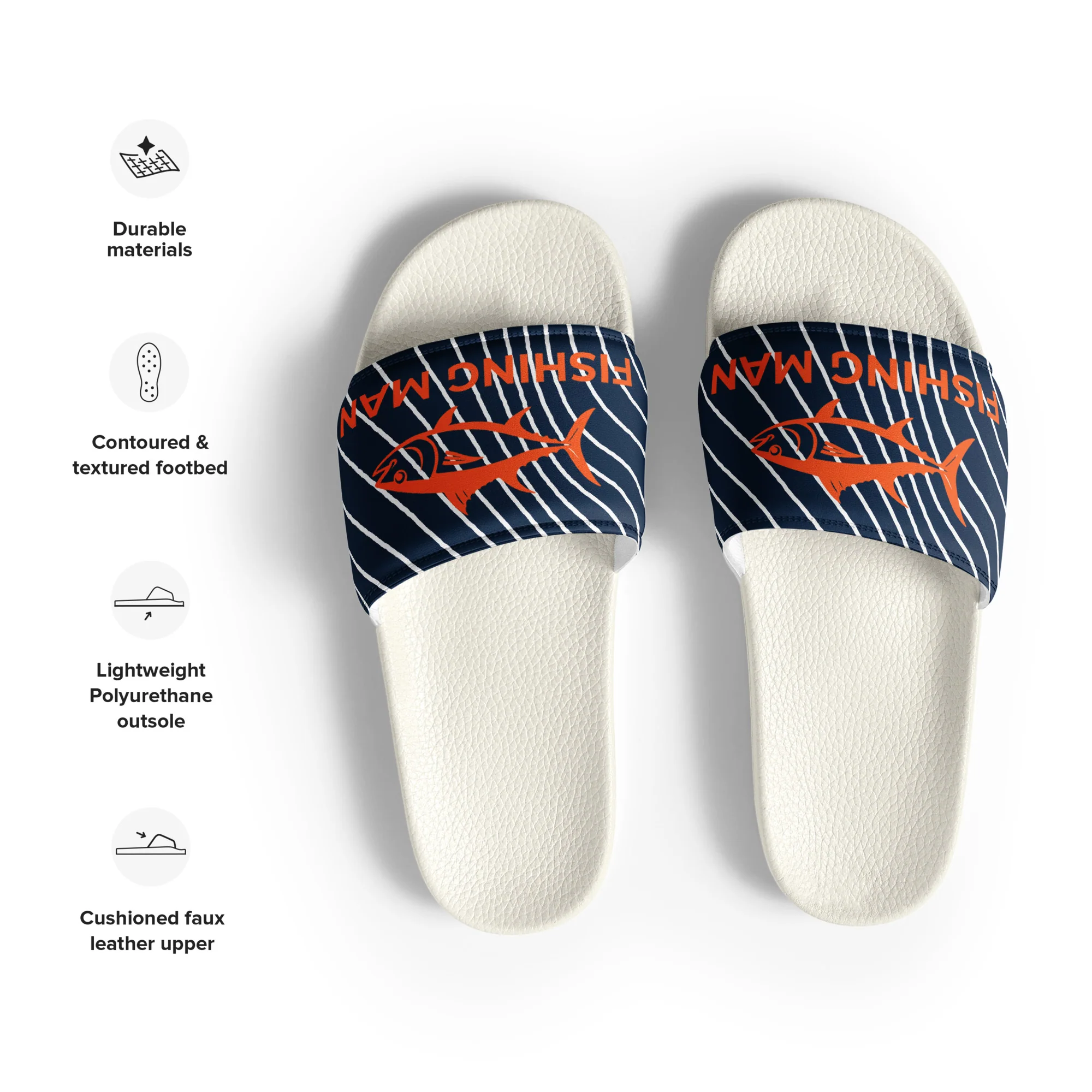 Ambiance océan, style affirmé. Avec leur look audacieux et leur logo thon orange Fishing Man, les claquettes Skipjack Party sont ta nouvelle paire incontournable pour l’été. Inspirées du thon listao (Skipjack), connu pour sa vivacité et sa rapidité, elles incarnent l’énergie et l’esprit libre de la marque.
