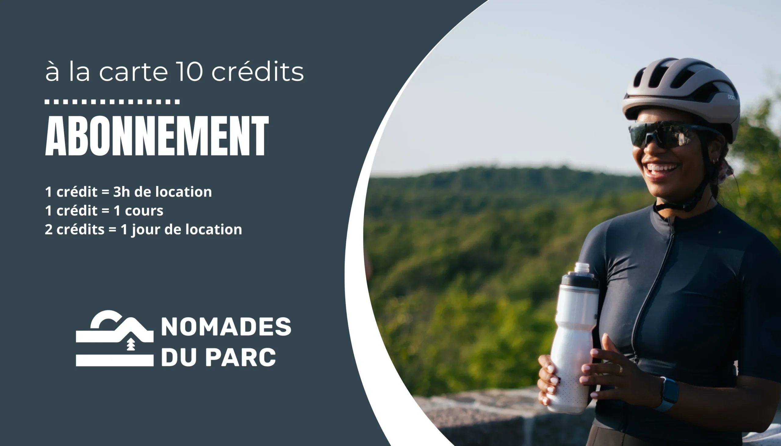 L’abonnement donne accès à tous les équipements en location (vélos et planches à pagaie) et aux cours offerts par Nomades du Parc. Tu peux partager tes crédits avec ton entourage ou séparer le coût d’achat avec eux.