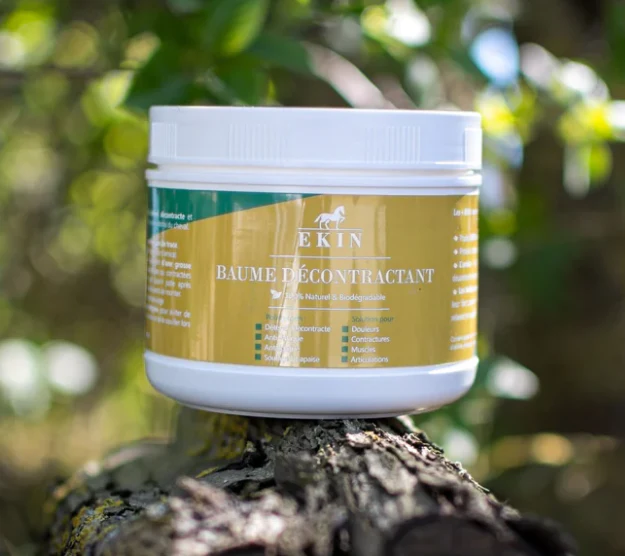 Décontracte, chauffe, détend, soulage les muscles, les tendons et les articulations du cheval. Le baume décontractant du laboratoire Ekin. Produit de massage pour chevaux. Apaise leurs douleurs après l’effort. Pour chevaux sujets aux douleurs, raideurs, crampes et courbatures.