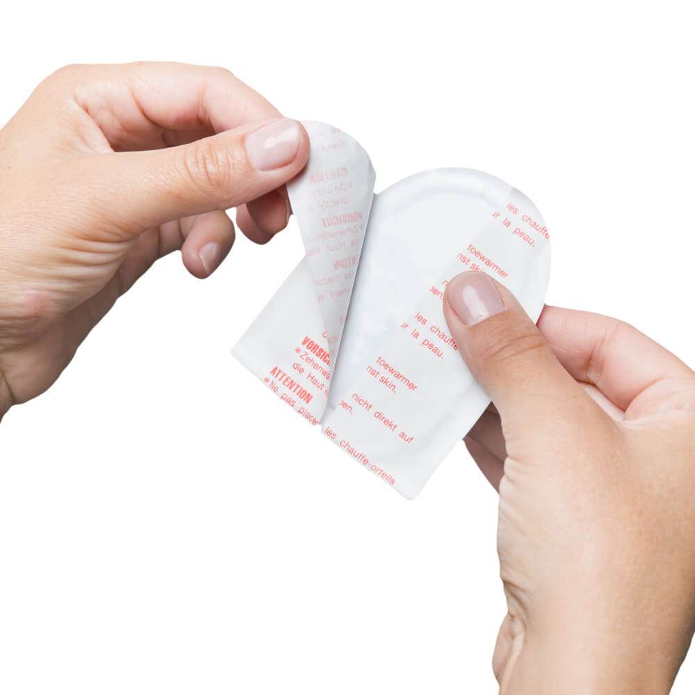 Coller ces chaufferettes au-dessous (ou au-dessus) de vos chaussettes, dans vos chaussures et profitez d’une agréable température de 40°C constante jusqu’à 8 heures.
