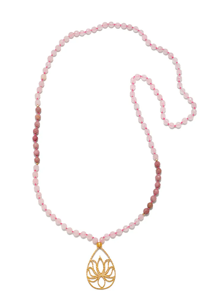 Collier-Mâla « Bloom In Love Lotus » Quartz rose & rhodonite – Plaqué 18k