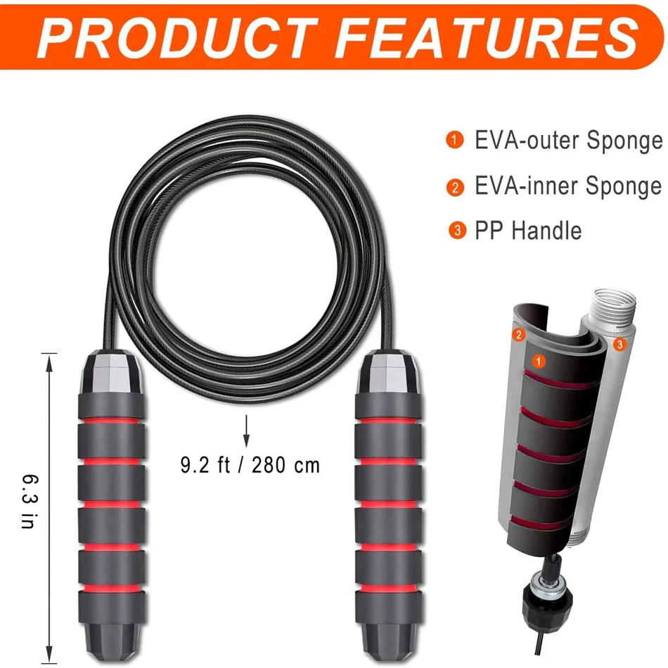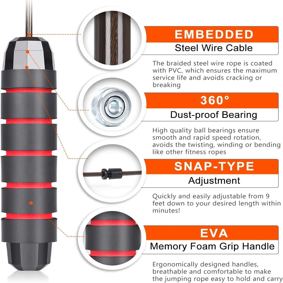 Notre corde a sauter a un système de roulement à billes de haute qualité assure une rotation fluide et rapide à 360°, ce qui empêche les enchevêtrements, les enroulements ou la flexion de la corde.