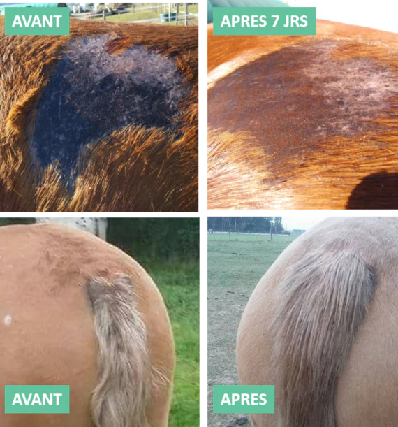 ⭐️⭐️⭐️⭐️⭐️ « Produit parfait, il a fait repousser la crinière de mon poney qui n’avait pratiquement plus de crins à cause du couvre cou. Odeur très agréable » Votre cheval a une ancienne blessure guérie sur laquelle les poils ne repousse plus ? Ce repousse du poil accélère la repousse du poil sur les zones de frottement. […]