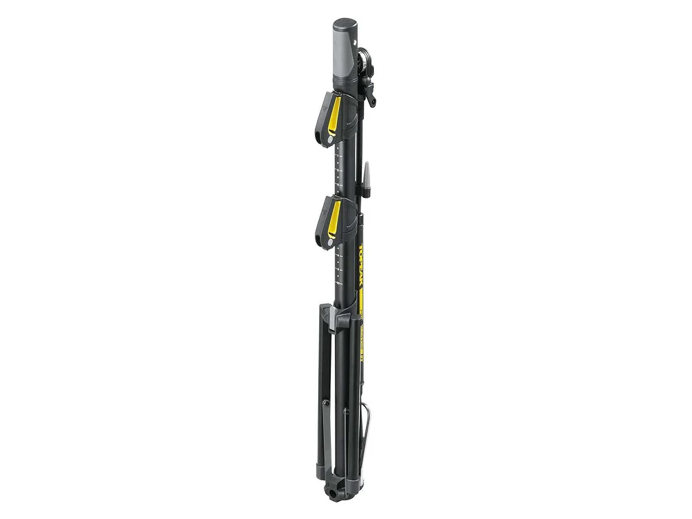 Support à vélo portable ultra compact et pompe à pied tout en un! • Capacité: 160 psi• Compatible avec valves Presta, Schrader et Dunlop