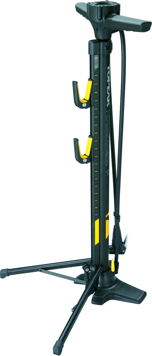Support à vélo portable et pompe à pied tout en un! • Capacité: 160 psi• Compatible avec valves Presta, Schrader et Dunlop