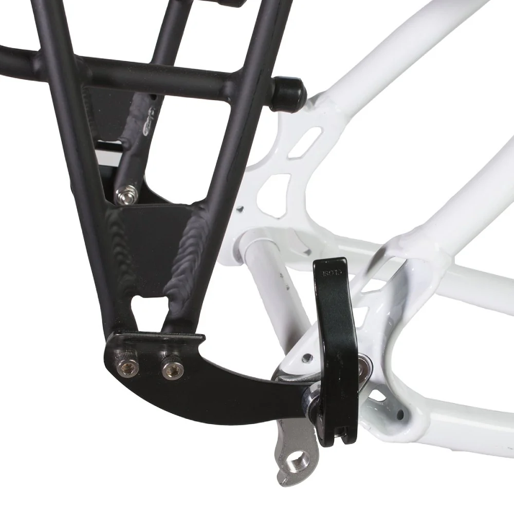 Un porte-bagages aérodynamique spécifiquement conçu pour les vélos de route et d’entraînement dépourvus d’oeillets filetés et sécuritaire pour les cadres en carbone.