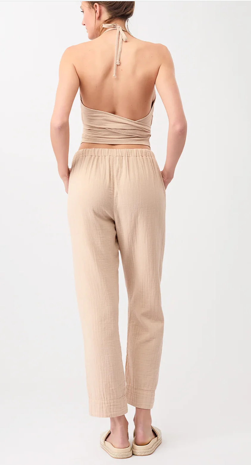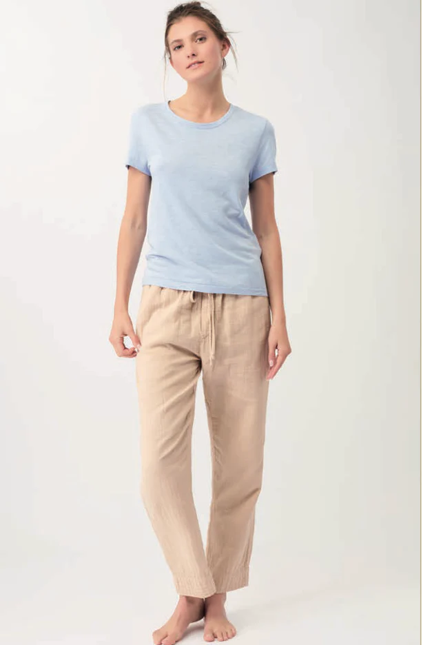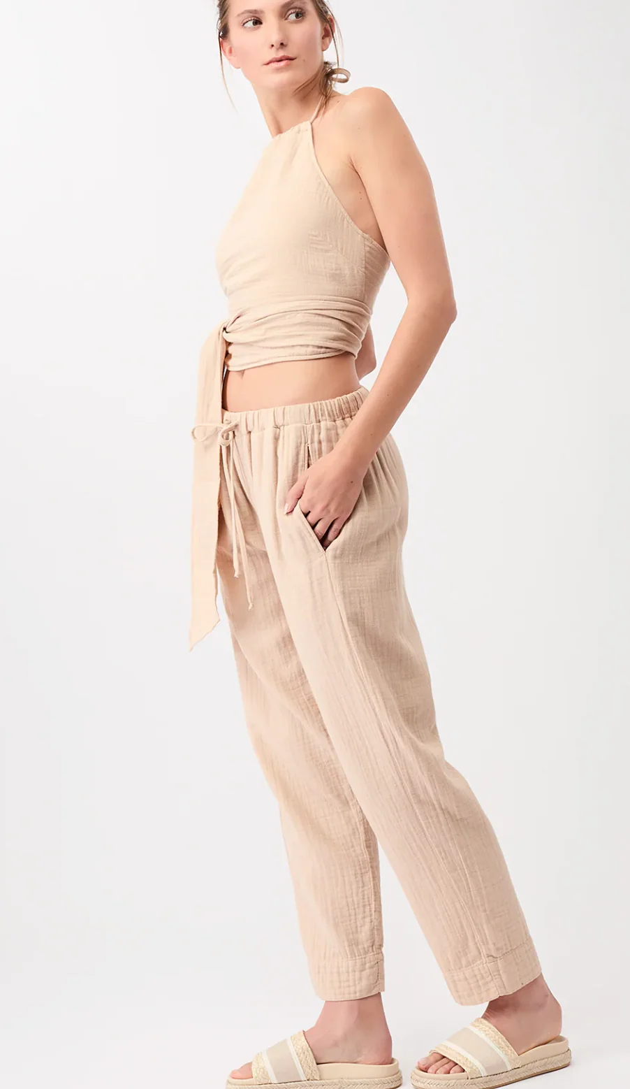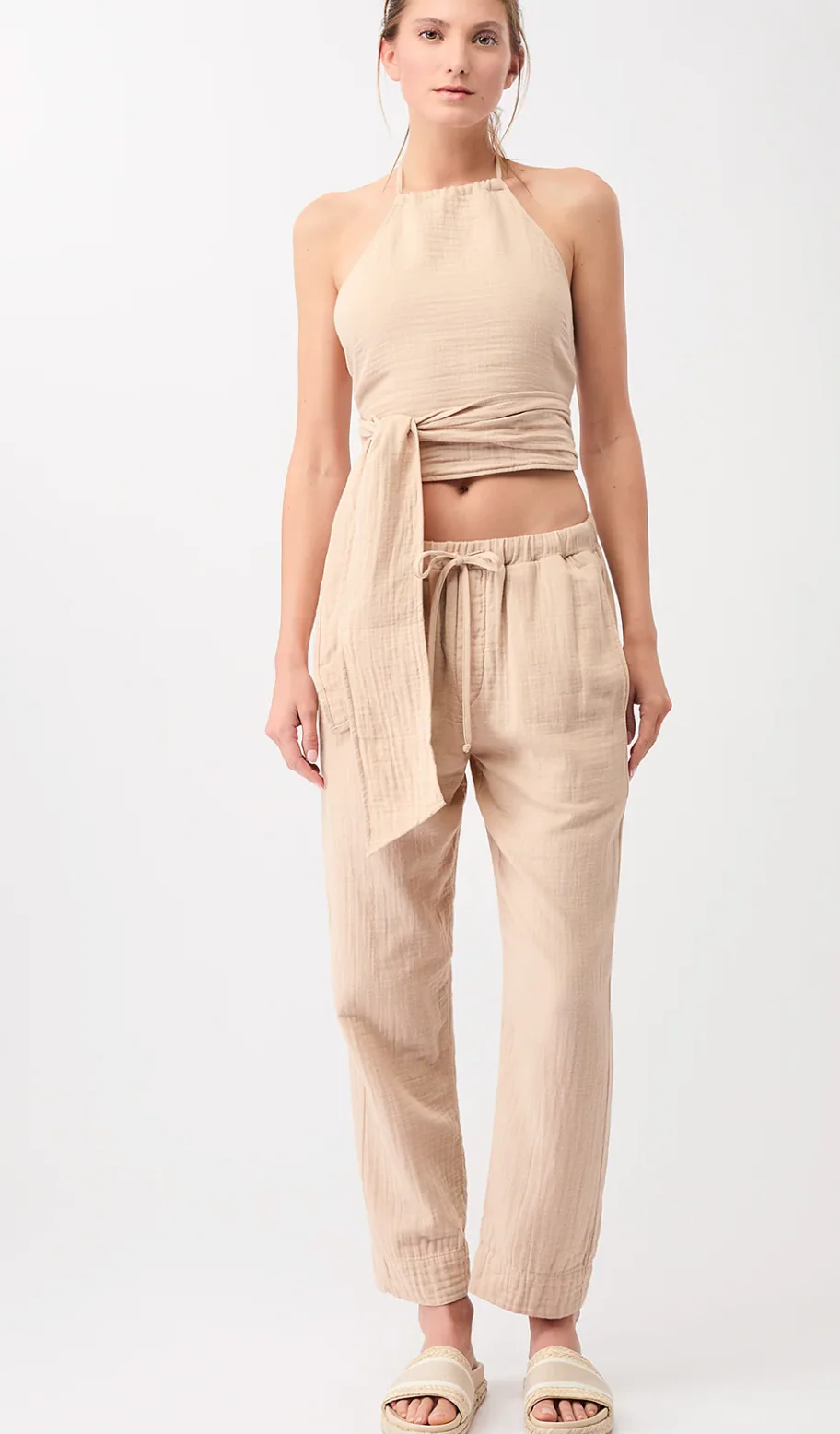 Cet article est fabriqué en 100% coton bio mousseline. Ce coton mousseline est un tissus particulièrement doux et léger à porter sur la peau, juste incroyable cette douceur qui nous accompagne. Ce pantalon a deux poches devant.