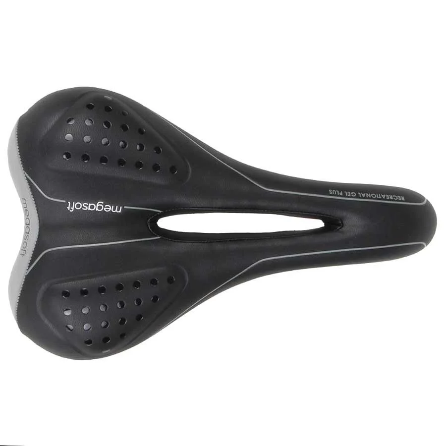 Selle pour femmes avec mousse à faible densité et coussins de gel ultra confortables qui absorbent les vibrations. Cuir synthétique. Châssis anatomique pour éviter les points de pression. Équipé de bandes réfléchissantes.