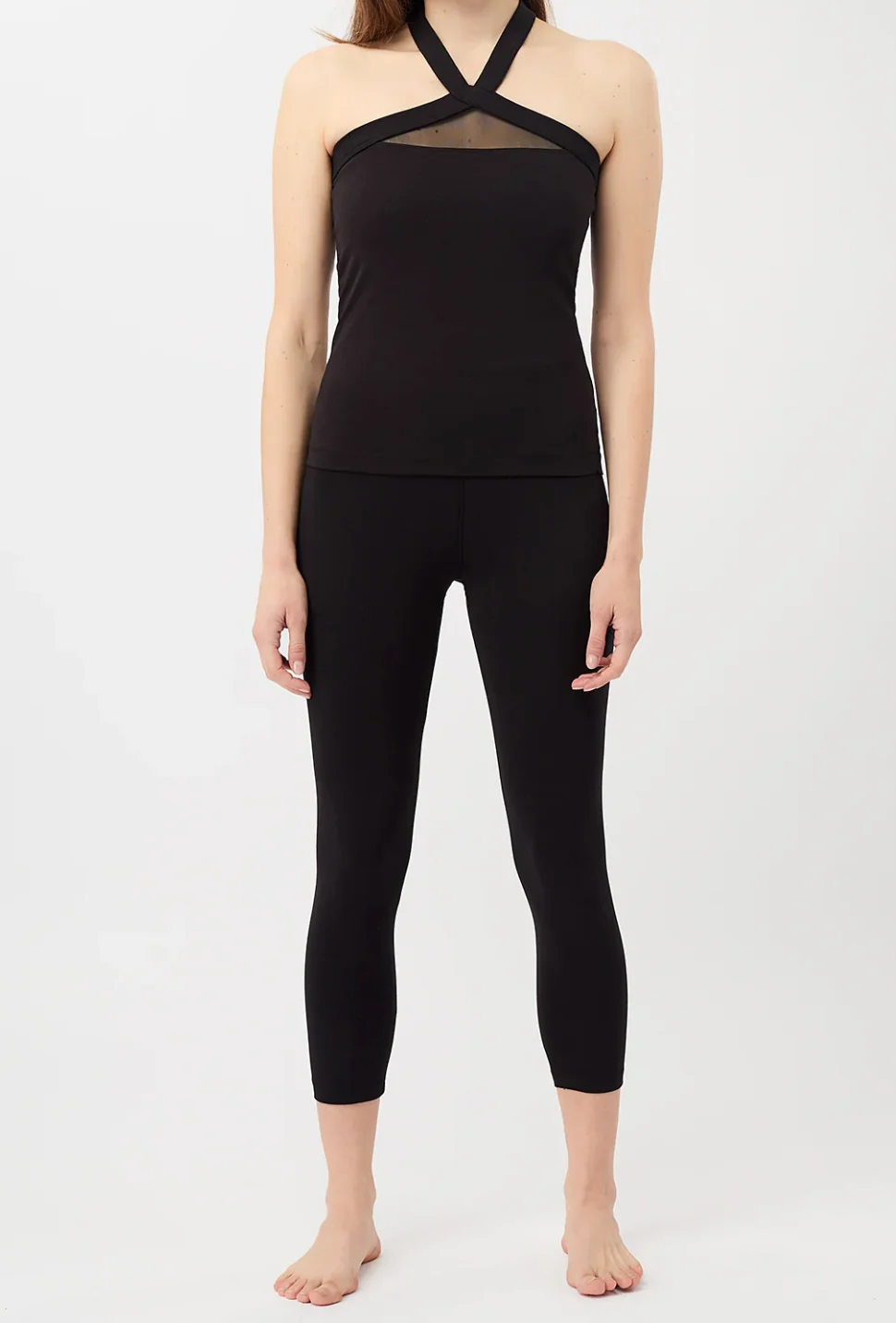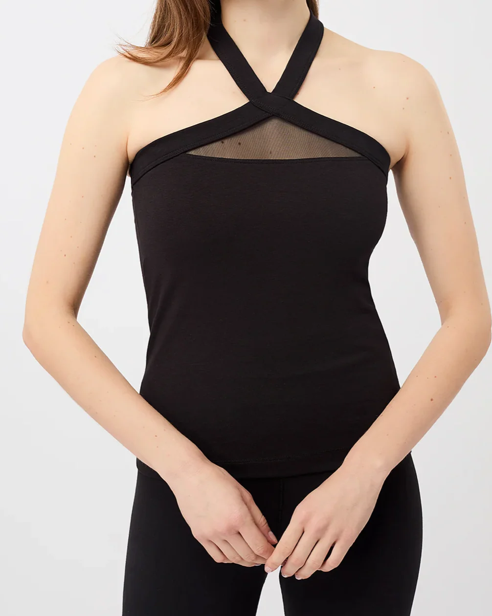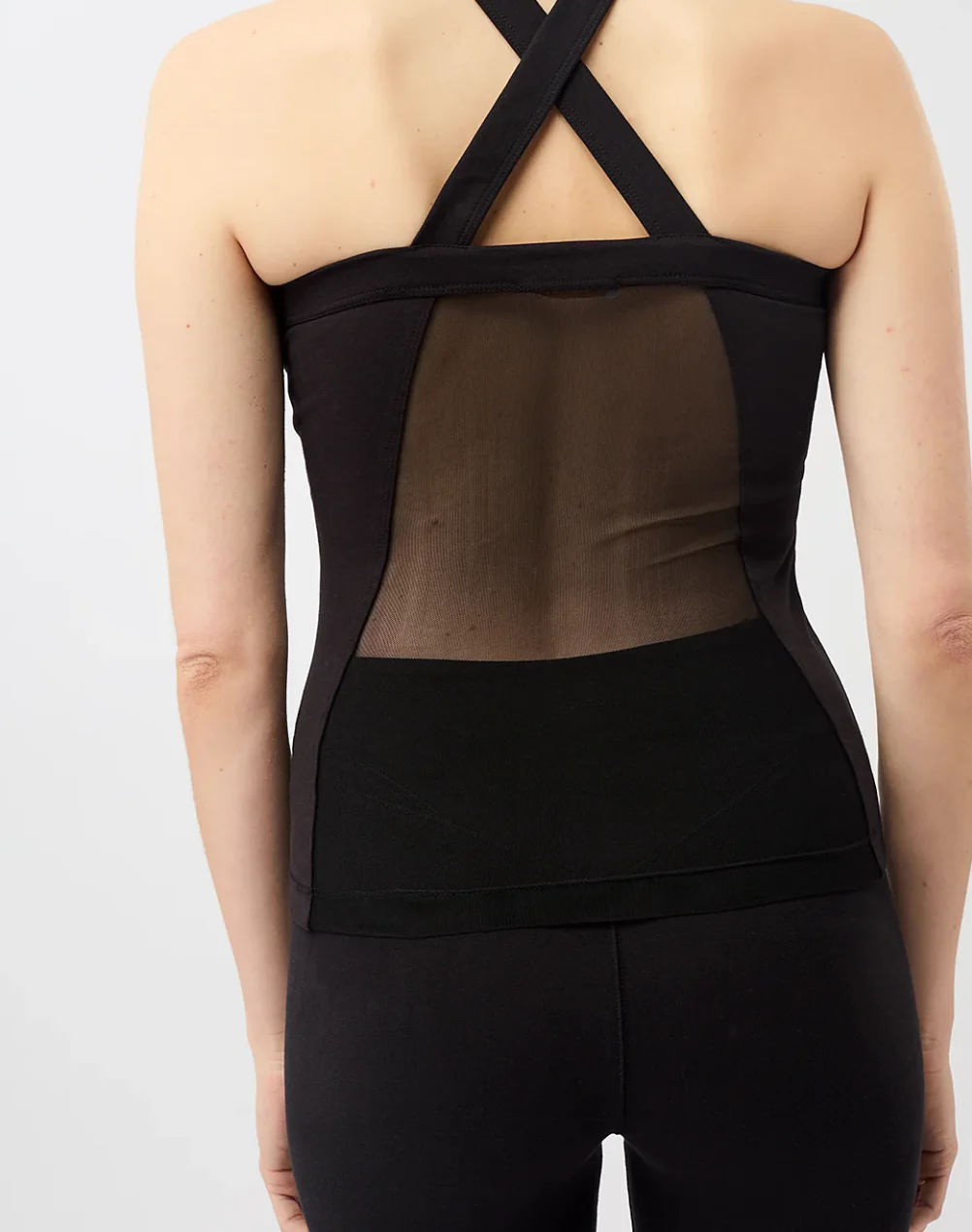 Top de yoga en coupe original, prés du corps, avec du tissus transparente devant et dans le dos, en coton jersey.
