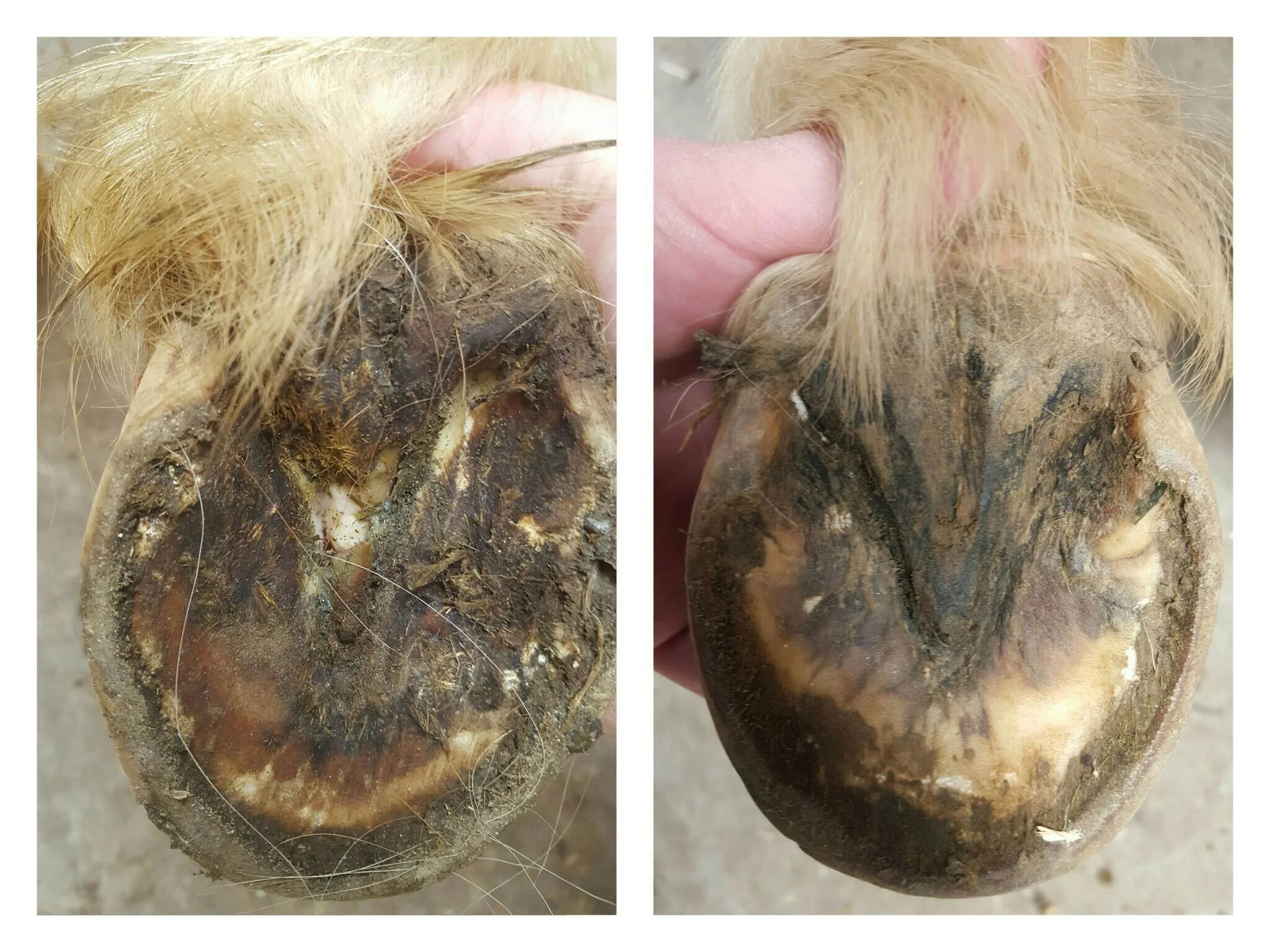 • Problèmes liés à l’humidité : sabot ramolli après un climat humide ou des irritations chimiques dues à l’urine et aux terrains humides.