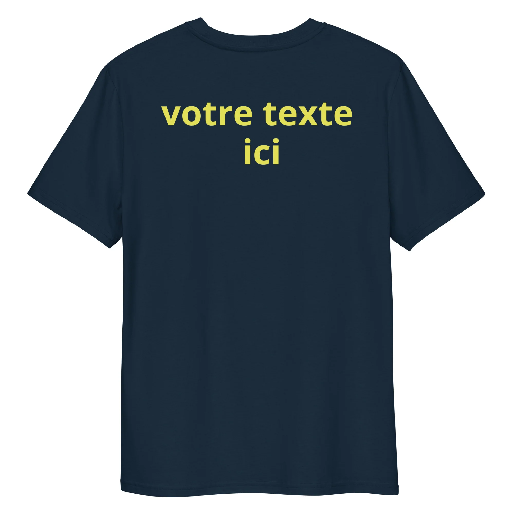 Soyez le premier à laisser votre avis sur “T-shirt bleu marine personnalisable – Logo Fishing Man & texte fluo dans le dos”
