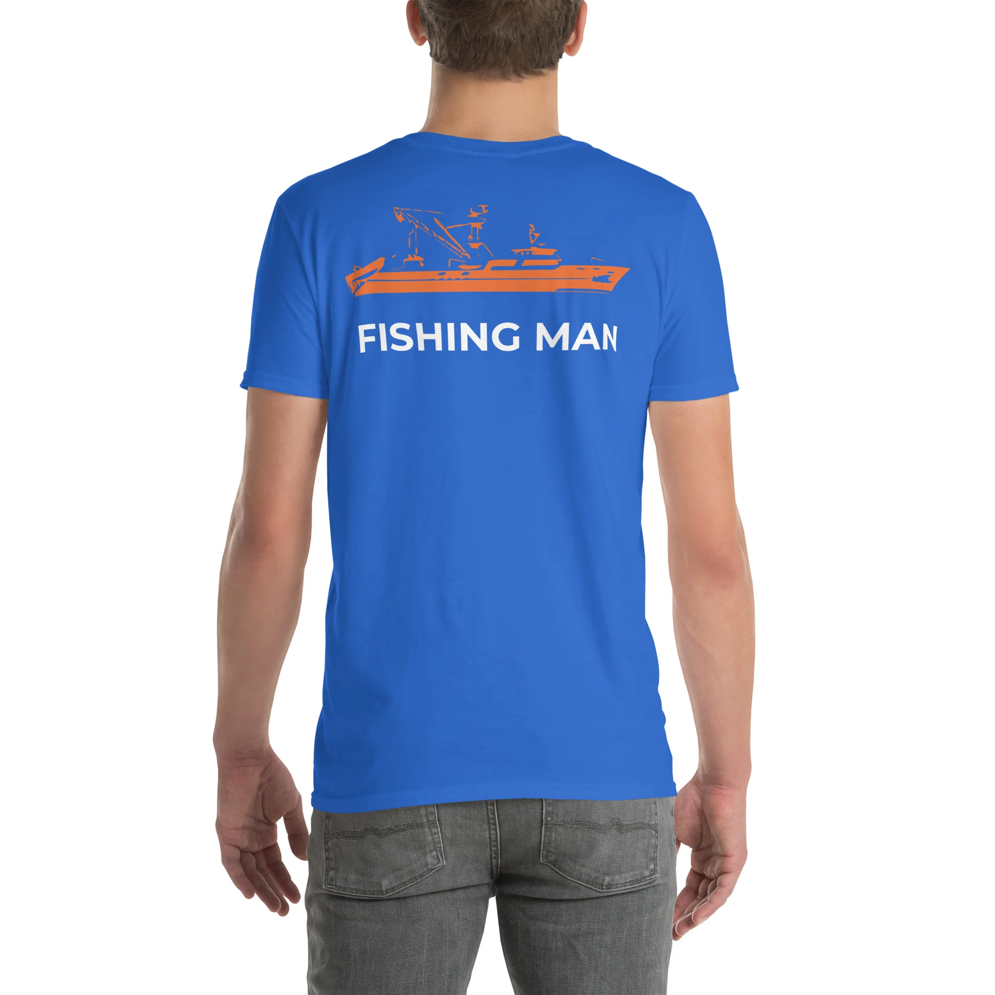 Ce modèle signature de Fishing Man associe sobriété et caractère : logo noir discret à l’avant, et visuel emblématique d’un thonnier orange dans le dos, pour un style affirmé et résolument marin.