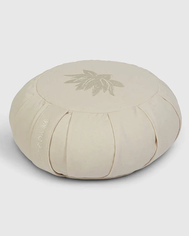 Zafu – coussin rond – Natural écru beige – imprimé Lotus